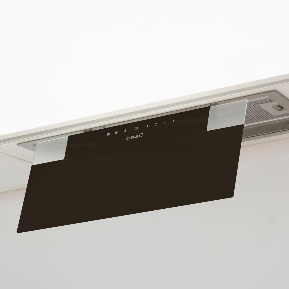CATA páraelszívó gc-dual 75 xgbk/d, Fokozatok száma: 3+1 (turbó), Forma, kivitel: Felső szekrénybe vagy kürtőbe építhető, Szélesség: 90 cm, Szín: Fekete üveg, Vezérlés: Érintővezérlés, Motorok száma: 1, Légszállítás: 1200/850 m3/h, Zajszint: 50-67 (dB/A), Nyomásérték: 405 Pa, Utószellőztetés: Igen, Világítás: 2x3,5w eco LED, Csőcsatlakozás: Javasolt 150 / min. 125 mm, Külső motorral is: Igen, Energiaosztály: A, Garancia: 3 év, Súly: 9 kg, EAN szám: 8422248078320, Cikkszám: 02131208