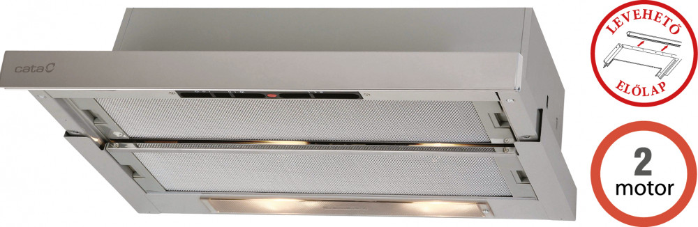 CATA páraelszívó - páraelszívó tf-5260 alu led, Fokozatok száma: 2, Forma, kivitel: Teleszkópos, Szélesség: 60 cm, Szín: Inox, Vezérlés: Tolókapcsoló, Motorok száma: 2, Légszállítás: 350/325 m3/h, Zajszint: 54-68 (dB/A), Nyomásérték: 205 Pa, Világítás: 2x5,5w LED, Csőcsatlakozás: 125 mm, Energiaosztály: E, Garancia: 3 év, Súly: 9 kg, EAN szám: 8422248082129, Cikkszám: 02034310