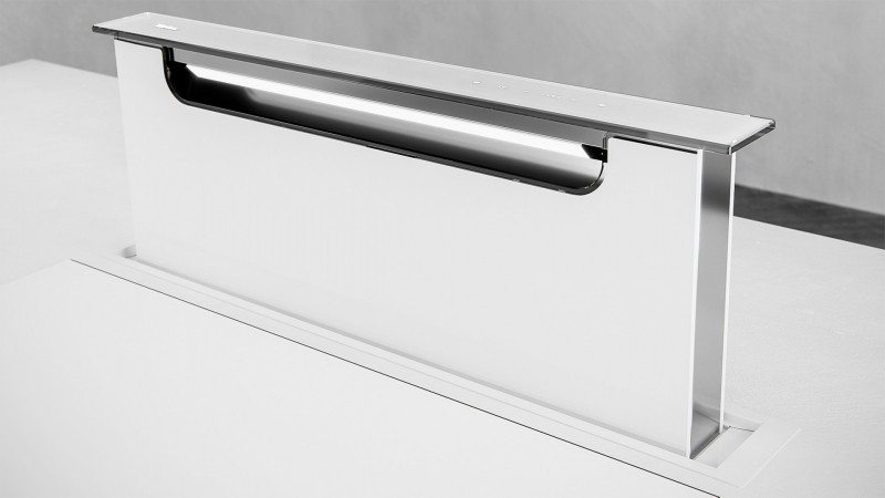 Az intuitív érintővezérléses felület lehetővé teszi a termék összes funkciójának kezelését. Kikapcsolt állapotban a páraelszívó visszasüllyed a pultba, majd bekapcsolást követően ismét kiemelkedik a főzőlap fölé.