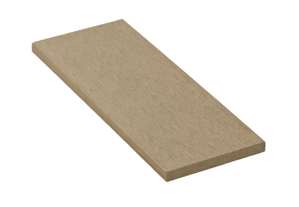 G21 lapos élzáró WPC anyagból 0,9 x 9 x 200 cm méretben a G21 padlóburkoló rendszerhez a terasz vagy a padló látszó élei eltakarására. A cumaru színű élzáró felhasználandó mennyisége egyedi a látható élek alakja és mérete szerint.