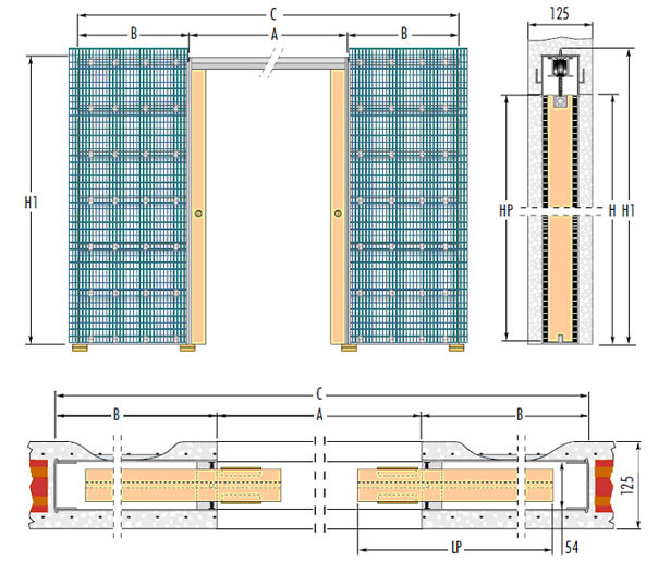 Vannak olyan szerkezetek, melyek mérete 1200 mm és 2600 mm között változik, a magassága 1000 és 2700 mm között van (köztes lépték 100 mm szélességben; magasságban pedig 50 mm) A szélességbeni lépték (A=1300 mm) az ajtópanelt méretre kell legyártani.